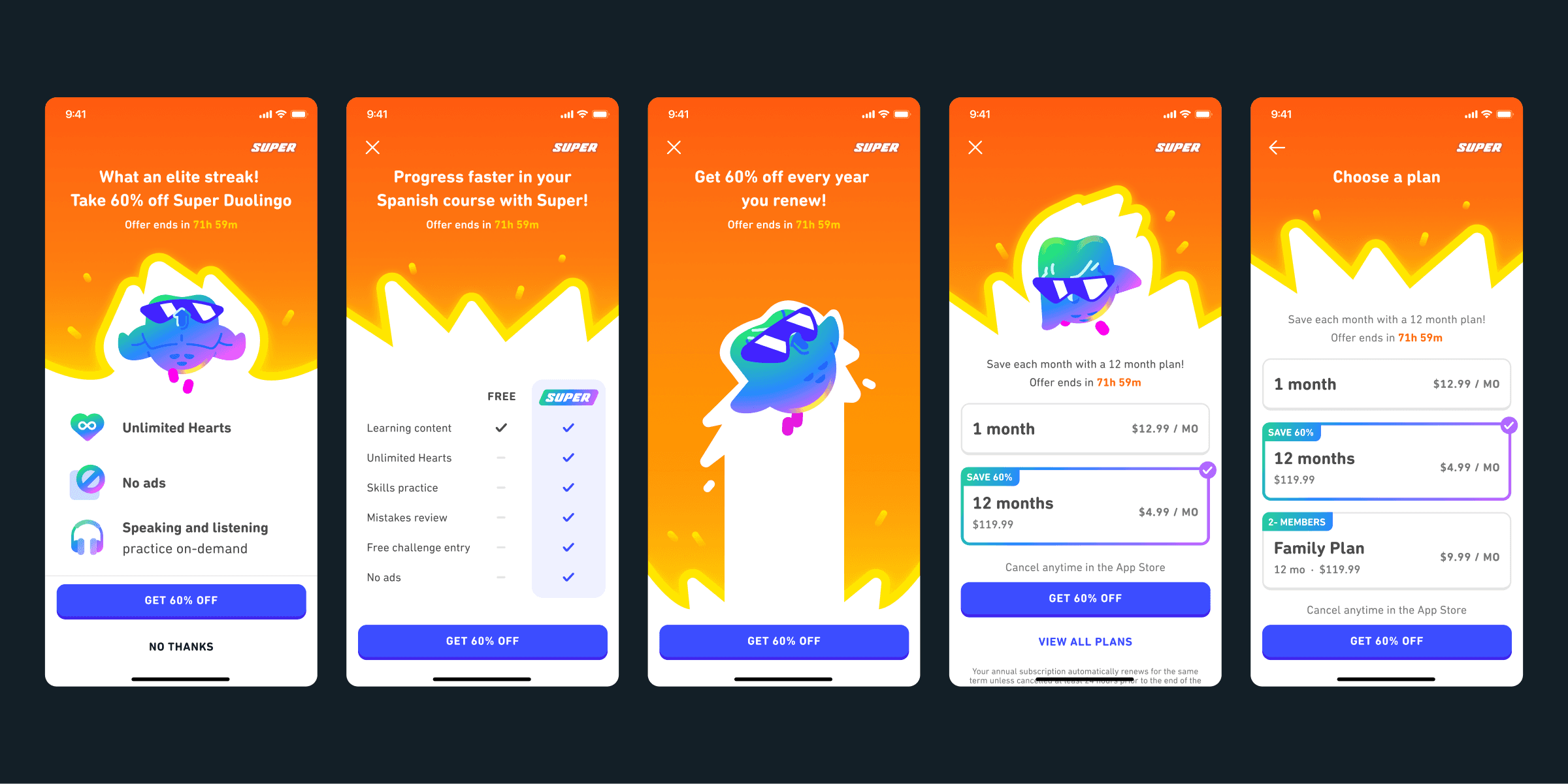 Design lead for an exploratory discount experience tied to learner streak milestones.
