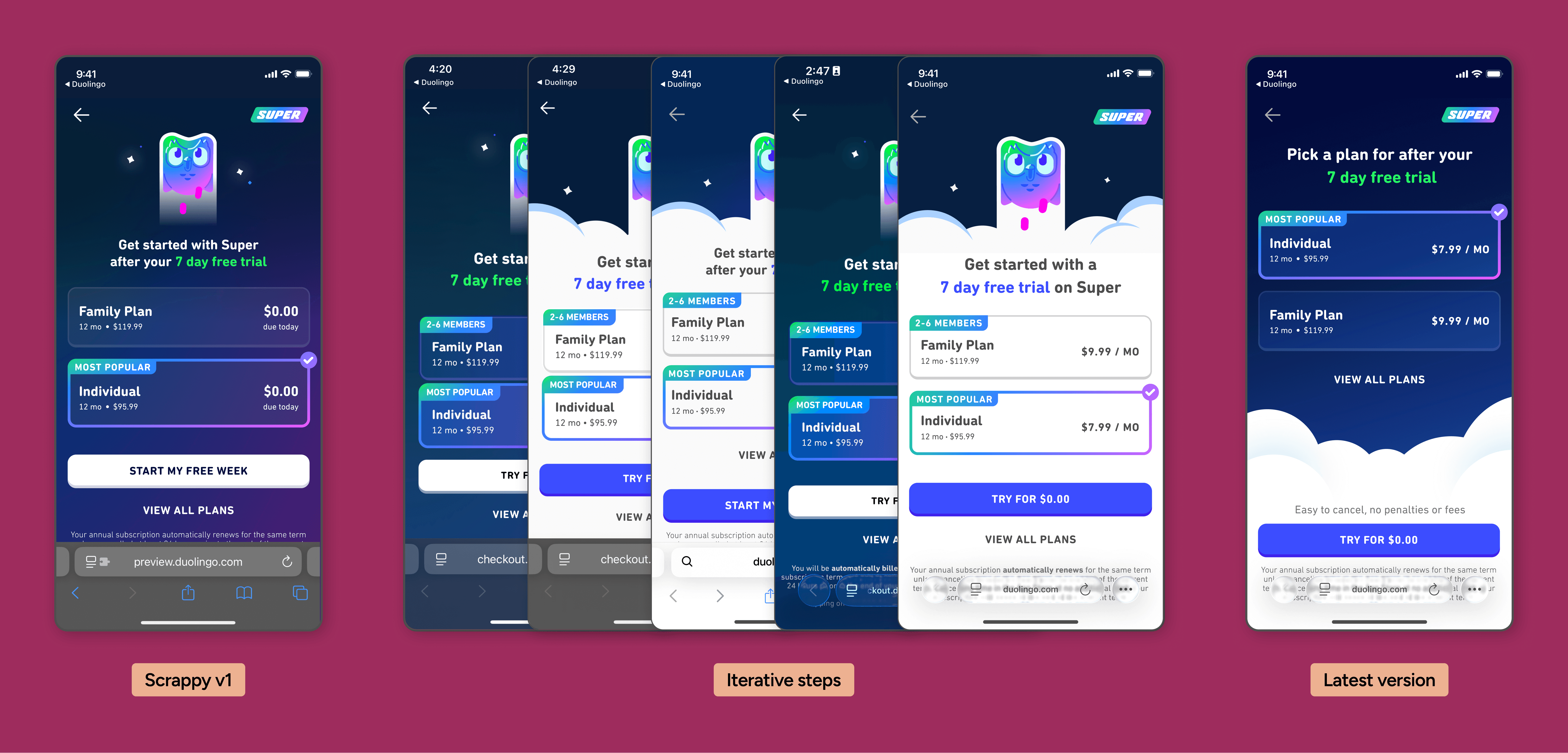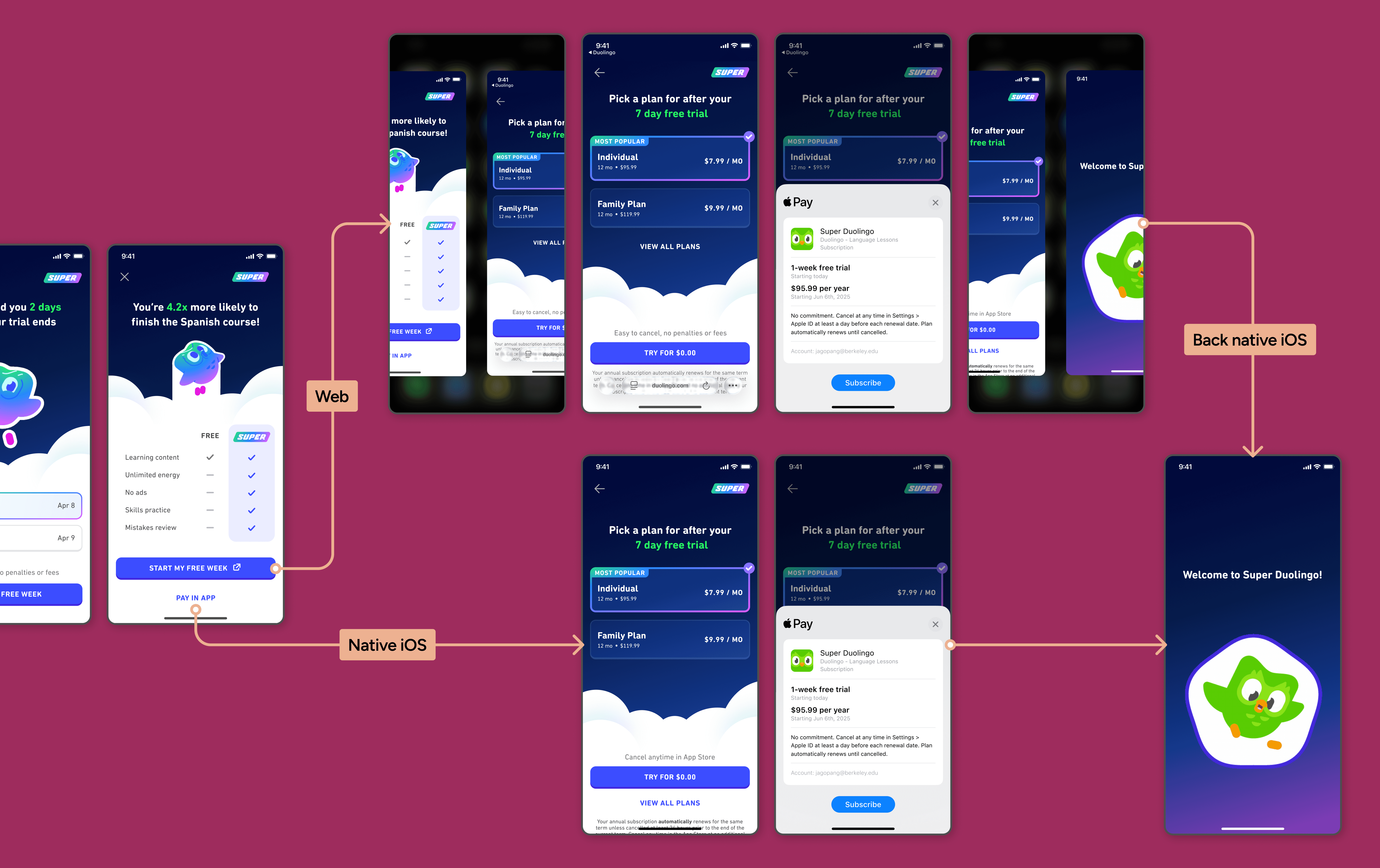 Led design of Duolingo’s web subscription purchase flow to reduce App Store dependency, while maintaining trust and clarity during a high-stakes financial decision.